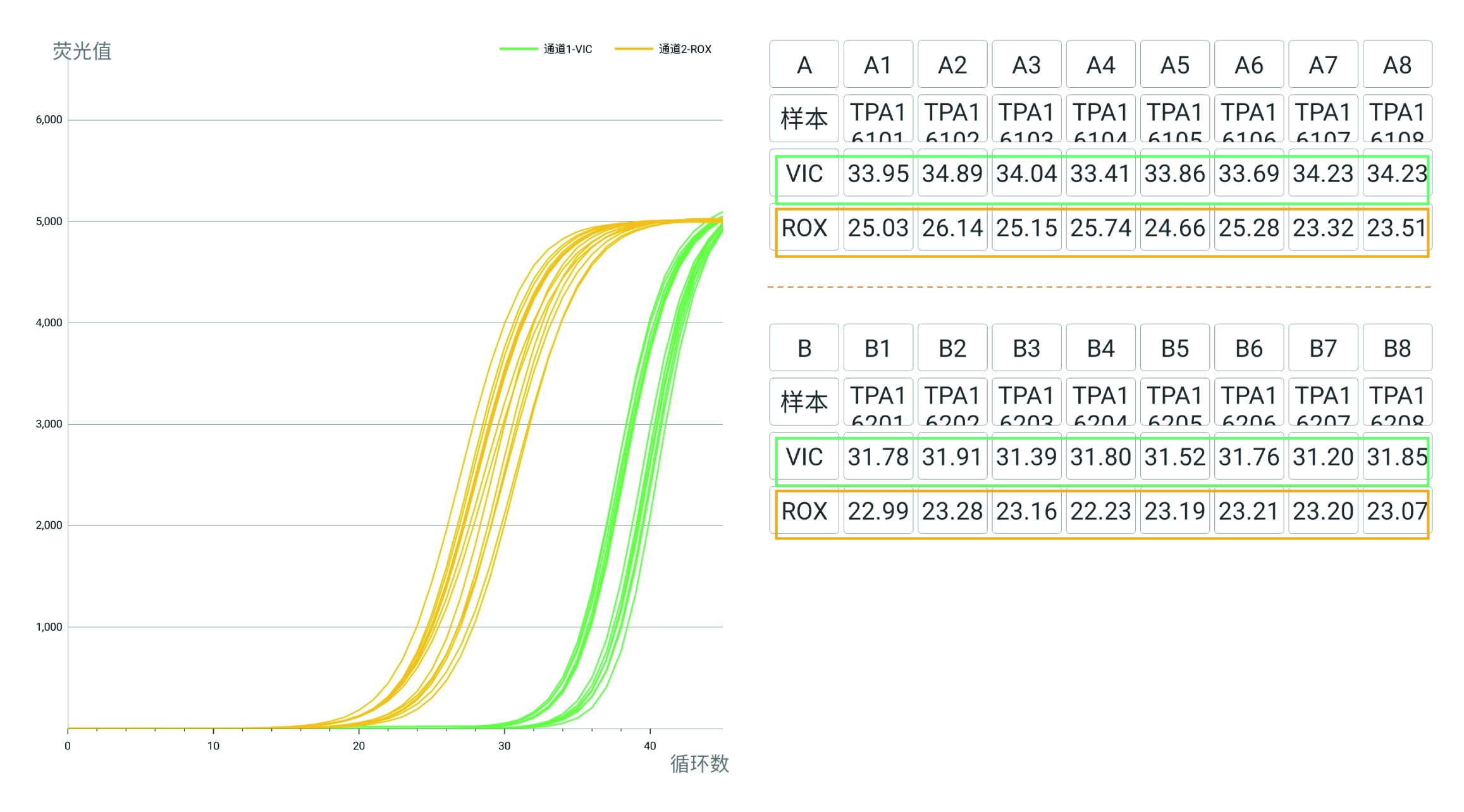 2. If  the ORF6 Gene-VIC is positive15 < Cq <35The result is positive of PRRSV-2.
