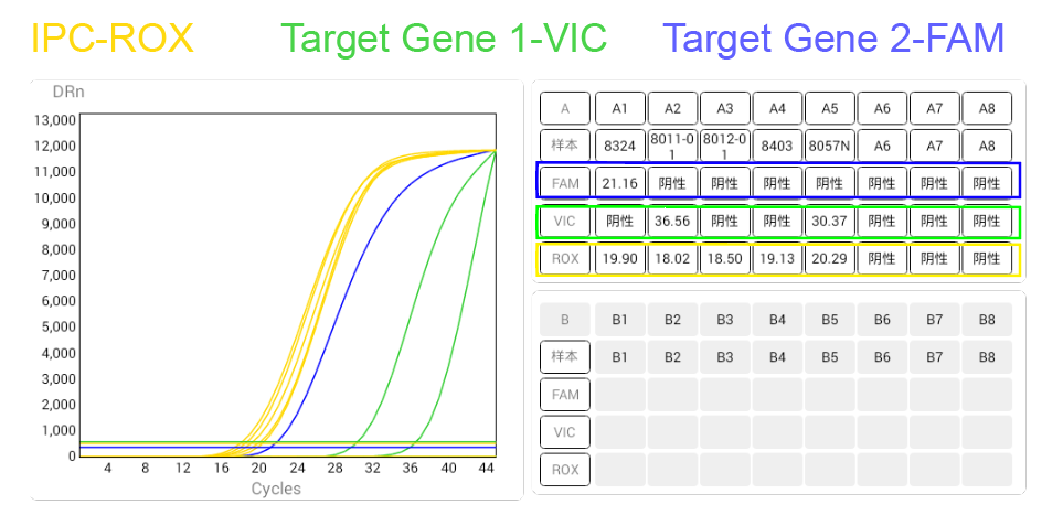 This reagent contains 600uL of primer-probe mix with 1 or 2 Target Genes and IPC gene,and at least 16 drops can be dripped in dropper PCR protocol.