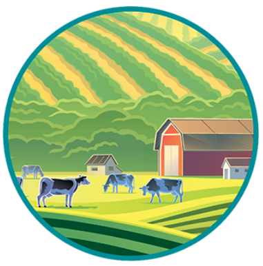 Cows graze next to a lettuce field. Cows can carry E. coli but still look healthy. | E. coli from cow manure in the nearby farm can contaminate the lettuce field. | People eat contaminated lettuce and can become infected with E. coli. Serious illness or sometimes death can result. |